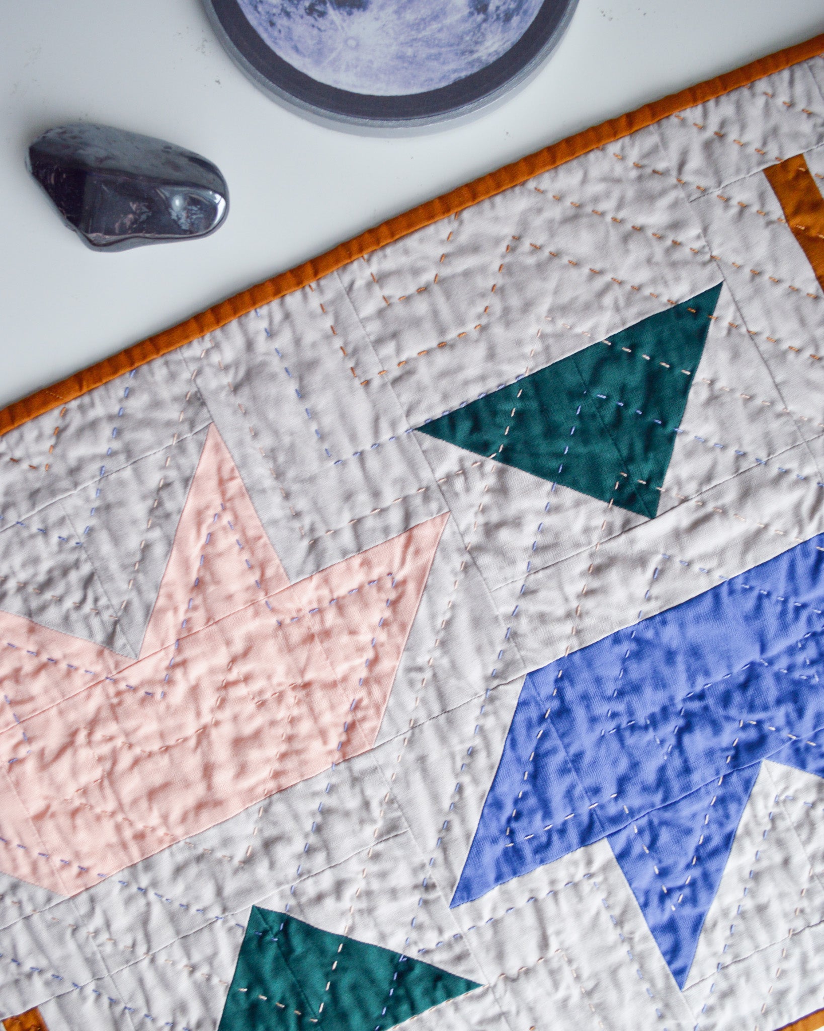 As part of the Quilt Rune series, the Binary Star Mini Quilt Pattern empowers you to practice half-square triangles and strip piecing while practicing mindfulness around patience. This is the perfect pattern for confident beginners who want to unleash their creativity while improving their quilting skills.
