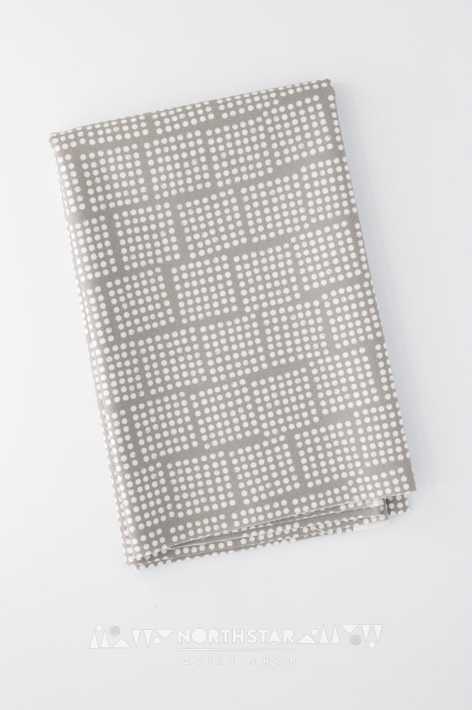 Modern Geometric: white dots in a playful block-printed style on a mid-toned neutral backdrop. Perfect for any modern quilting project.