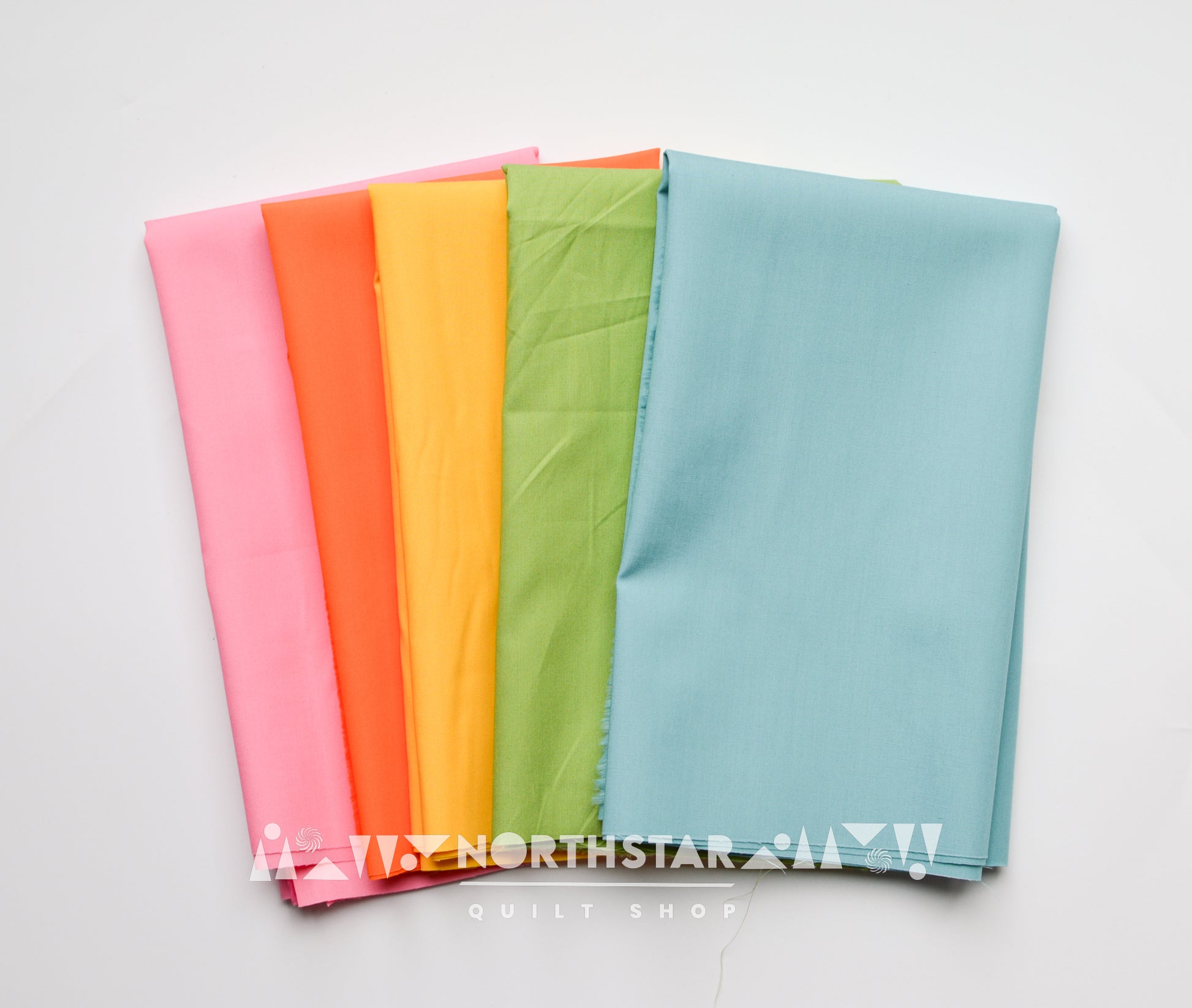 What’s Included: This bundle includes 5 PURE Solids chosen to complement the Marigold palette. Perfect for quilt backgrounds, sashing and borders, modern color-blocking, low-volume balance, stash building.