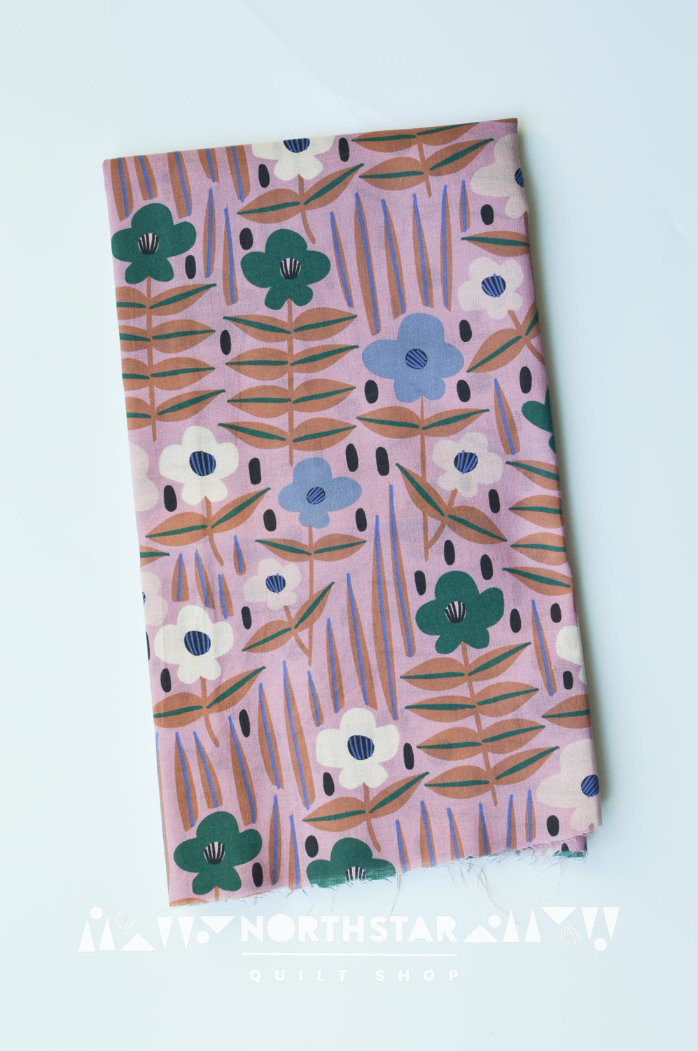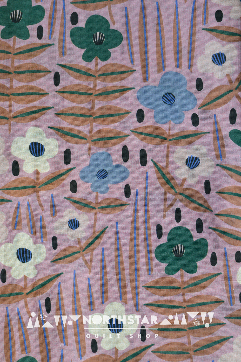 Modern Floral: green, blue, and white blooms on a soft rose background. Perfect for any modern quilting project.