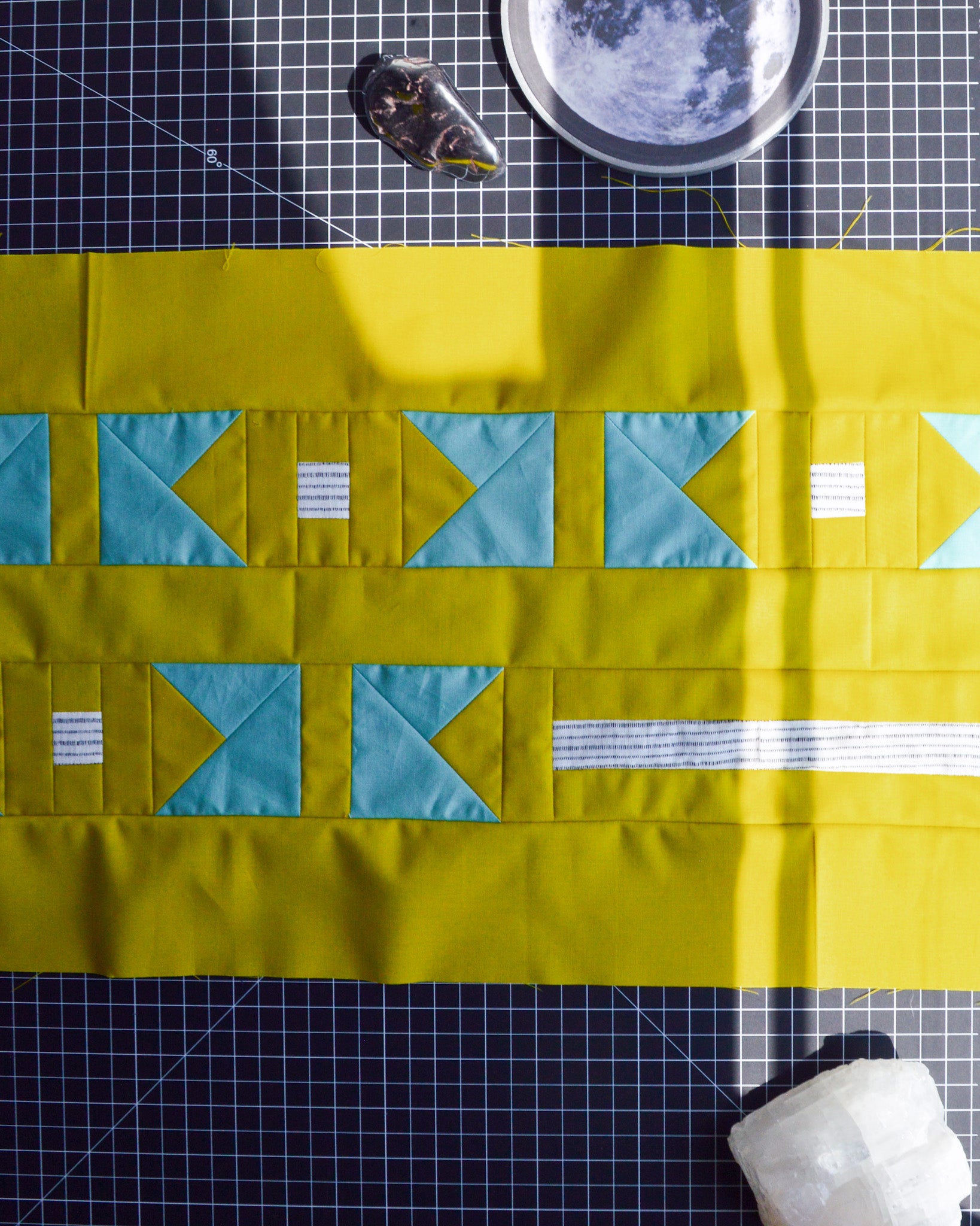 Detailed diagrams for a 14” X 28” mini quilt, so you have guidance every step of the way