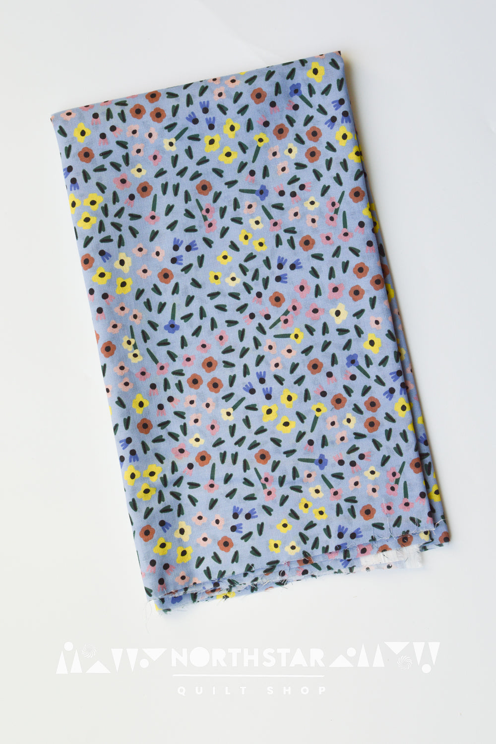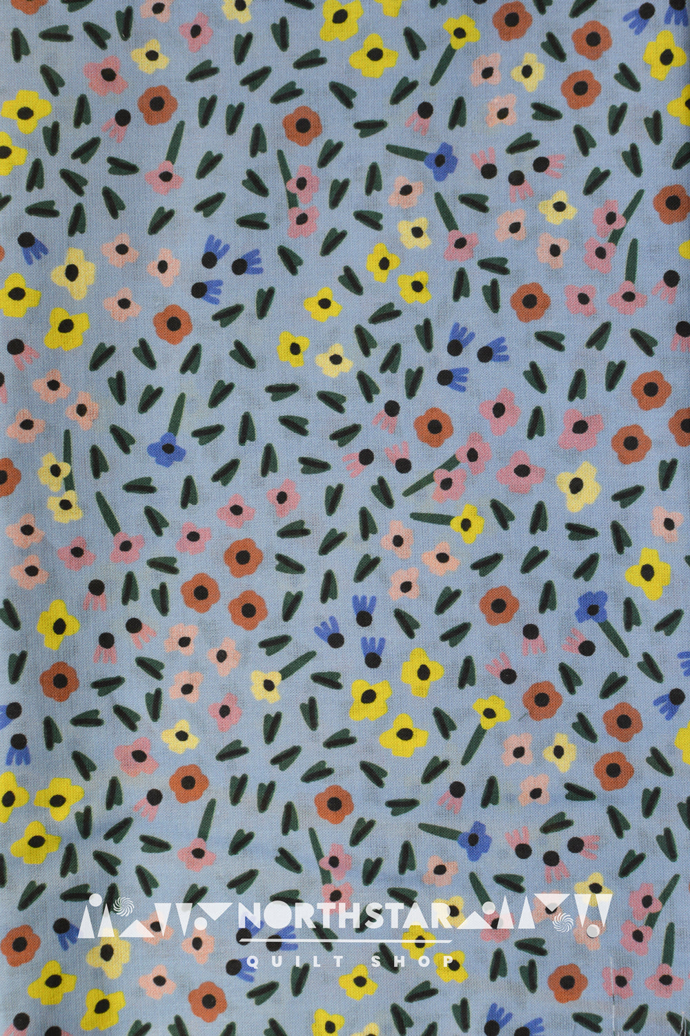 Modern Floral: sweet little blooms in yellow, rust, and pink on a soft blue background. Perfect for any modern quilting project.